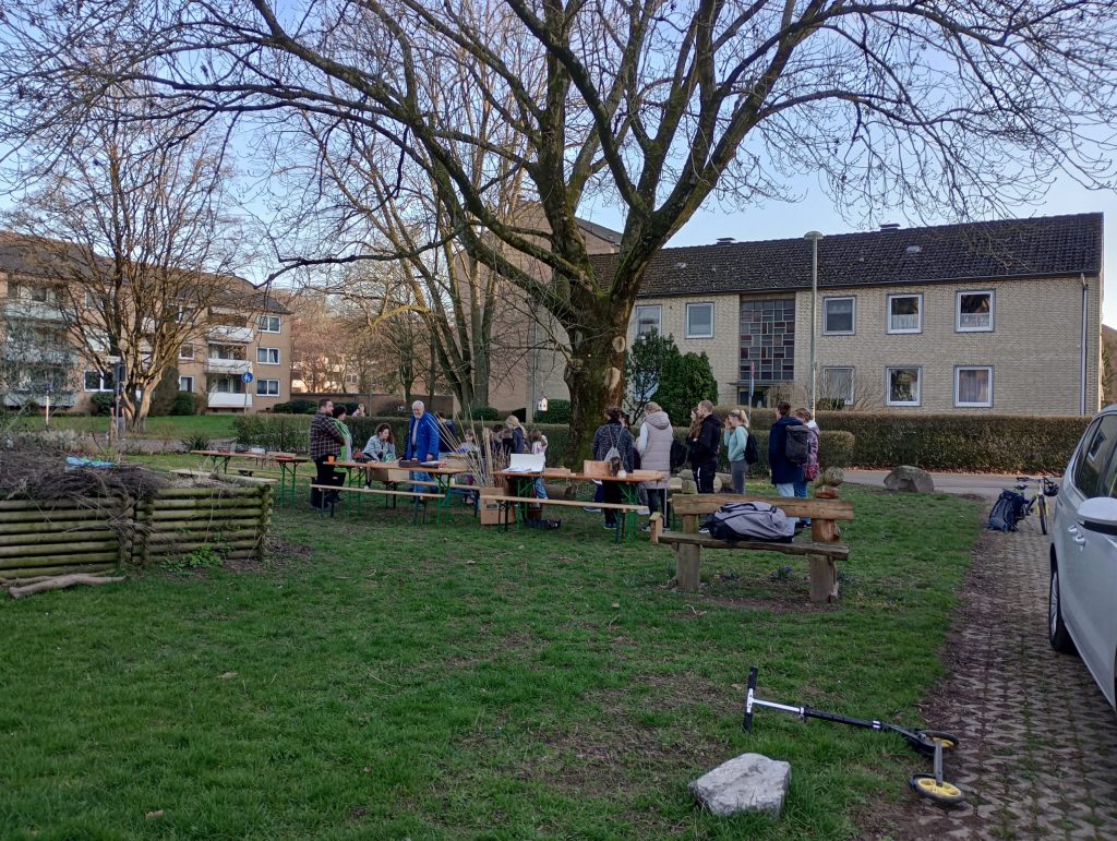 Am 4. März war Friedrich Rohdenburg von KlikKs zu Gast beim Klima-Talk, einer monatlichen Veranstaltung der Stadt Leichlingen mit der Diakonie Katastrophenhilfe. Ca. 15 Kinder und 12 Erwachsene konnten unter seiner Anleitung Wildbienenhotels bauen.